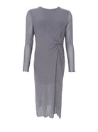 Elegantes Netzkleid mit kleinen Glitzerdetails. Das Kleid hat lange Ärmel, einen Rundhalsausschnitt und eine figurbetonte Passform mit seitlicher Drapierung, die für einen schmeichelnden Fall sorgt. Die leichte, transparente Qualität macht es ideal für festliche Anlässe, bei denen es mit einem Unterkleid oder Top und Rock darunter gestylt werden kann.