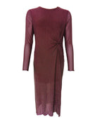 Elegantes Netzkleid mit kleinen Glitzerdetails. Das Kleid hat lange Ärmel, einen Rundhalsausschnitt und eine figurbetonte Passform mit seitlicher Drapierung, die für einen schmeichelnden Fall sorgt. Die leichte, transparente Qualität macht es ideal für festliche Anlässe, bei denen es mit einem Unterkleid oder Top und Rock darunter gestylt werden kann.