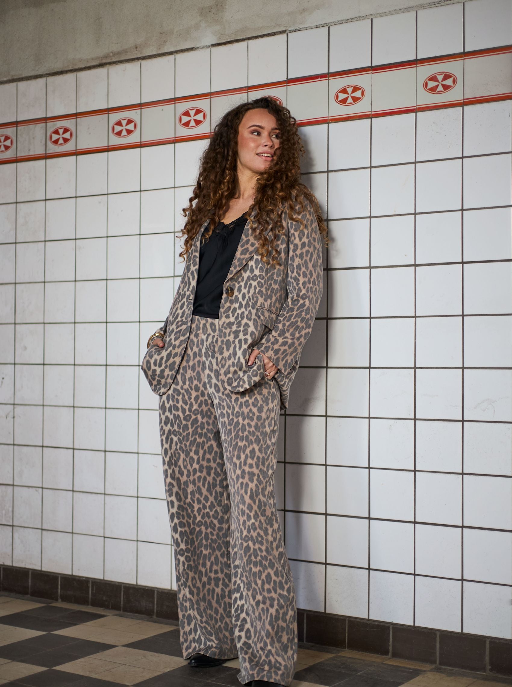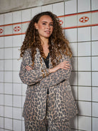 Eleganter Blazer aus leichtem Webstoff mit klassischem Revers und Ein-Knopf-Verschluss. Der Blazer besticht durch einen wunderschönen Leopardenprint, der ihm einen modernen und stilvollen Look verleiht. Tragen Sie ihn mit der passenden Hose für ein komplettes Outfit oder über einem schlichten Top für einen eleganten Look.