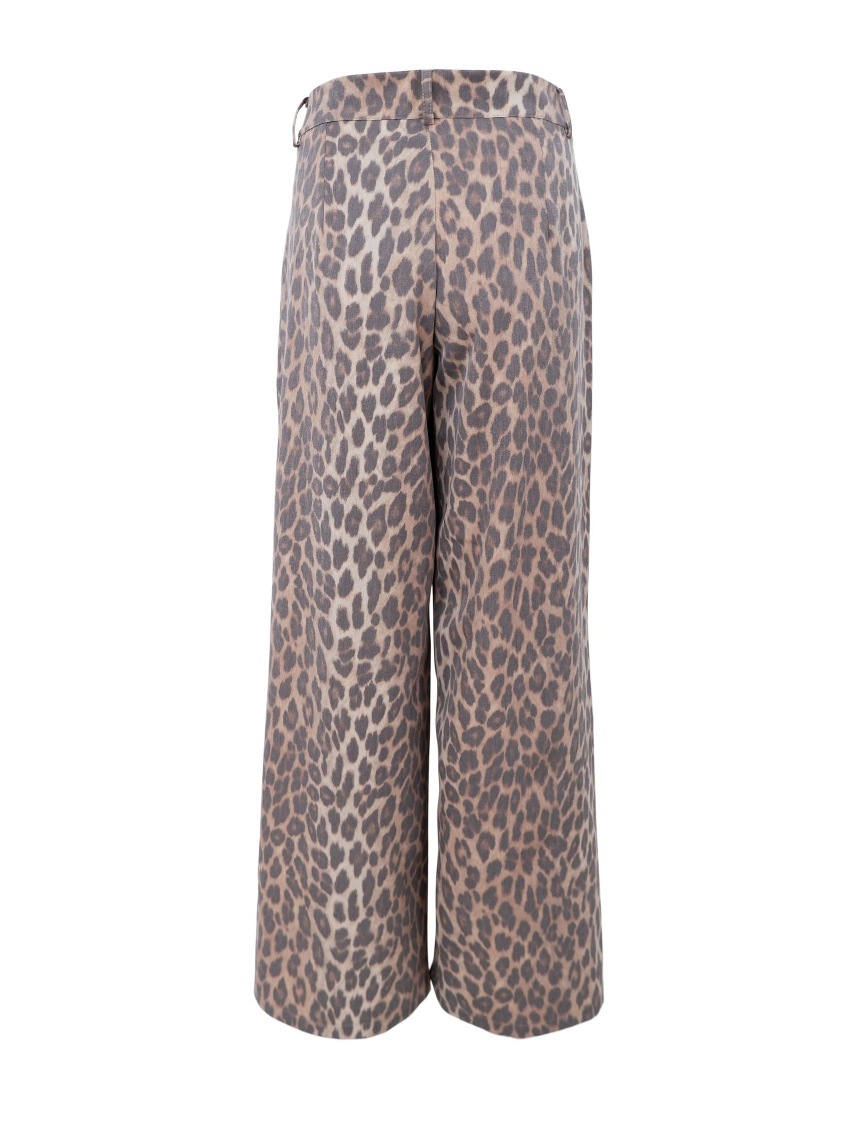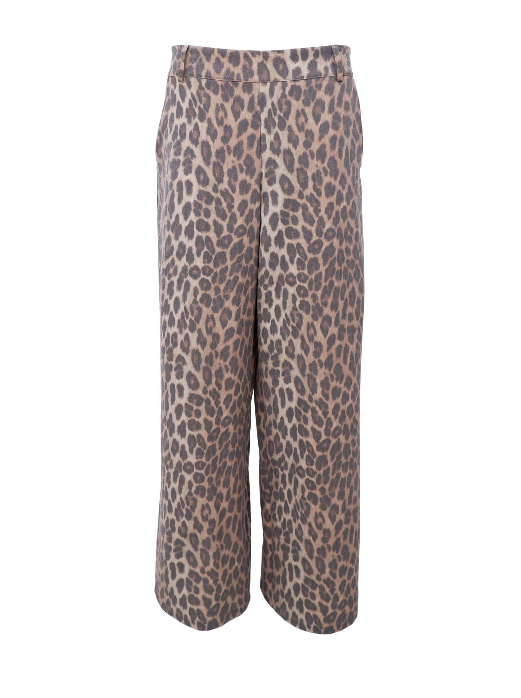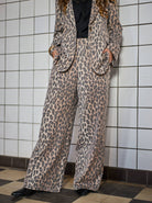 Stilvolle Hose mit Leopardenmuster, lockerem, geradem Schnitt und elastischem Bund hinten für optimalen Tragekomfort. Die klaren Linien und das moderne Muster machen sie vielseitig kombinierbar. Tragen Sie sie mit einem passenden Blazer für einen kompletten Look oder mit einem schlichten Oberteil für ein lässig-elegantes Outfit.