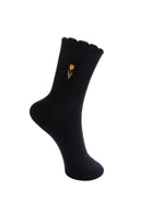 Wunderschöner Strumpf mit kleiner gestickter Blume und gewelltem Rand.