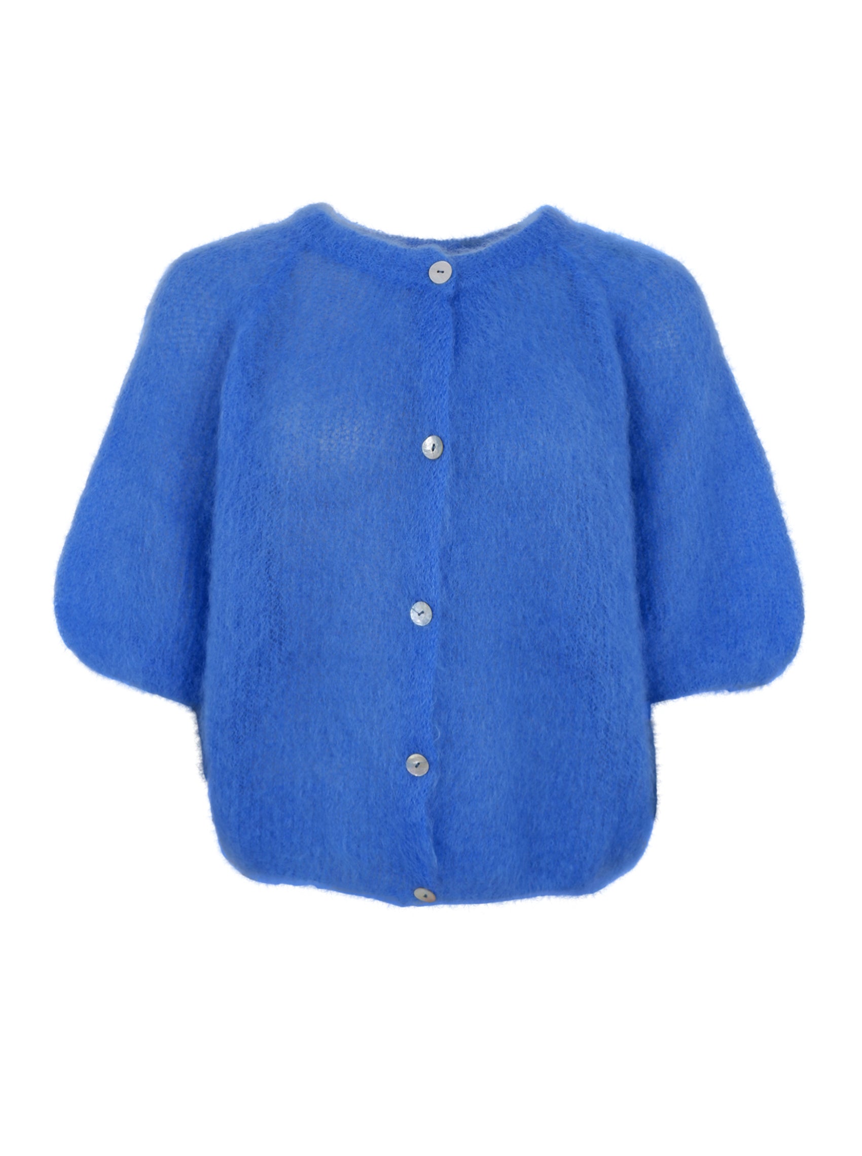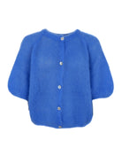 Diese Strickjacke von Björk ist aus leichtem, flauschigem Material gestrickt und verleiht einen exklusiven, femininen Look. Das Modell hat einen Rundhalsausschnitt und kurze Puffärmel, die eine moderne und lässige Silhouette erzeugen. Die Strickjacke wird vorne mit feinen Knöpfen geschlossen, was das schlichte und elegante Design unterstreicht.