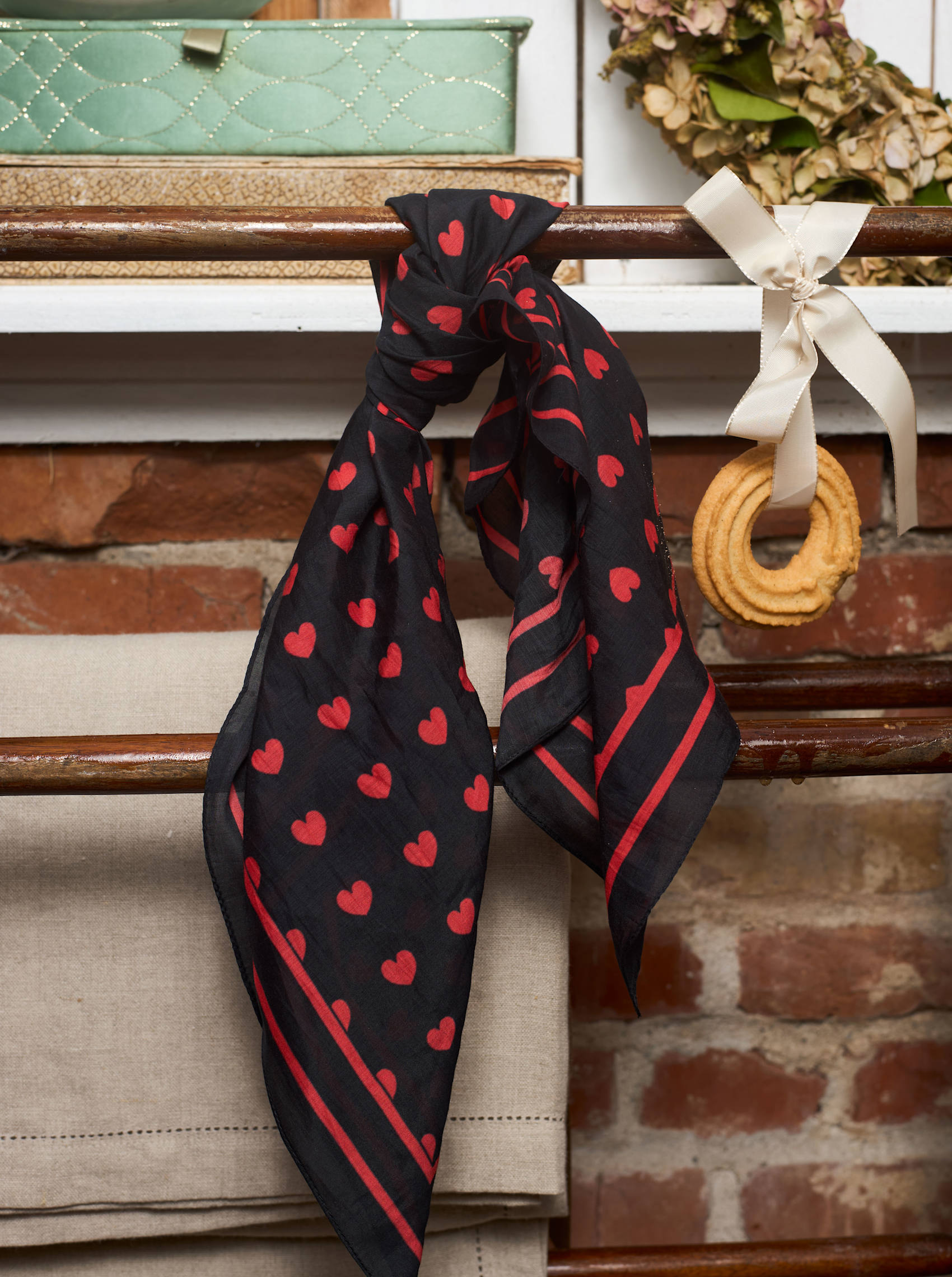 Der Claudia Minischal ist ein weicher Baumwoll-Seidenschal mit wunderschönem Herz-Print. Der Schal ist die perfekte Ergänzung für jeden Look.