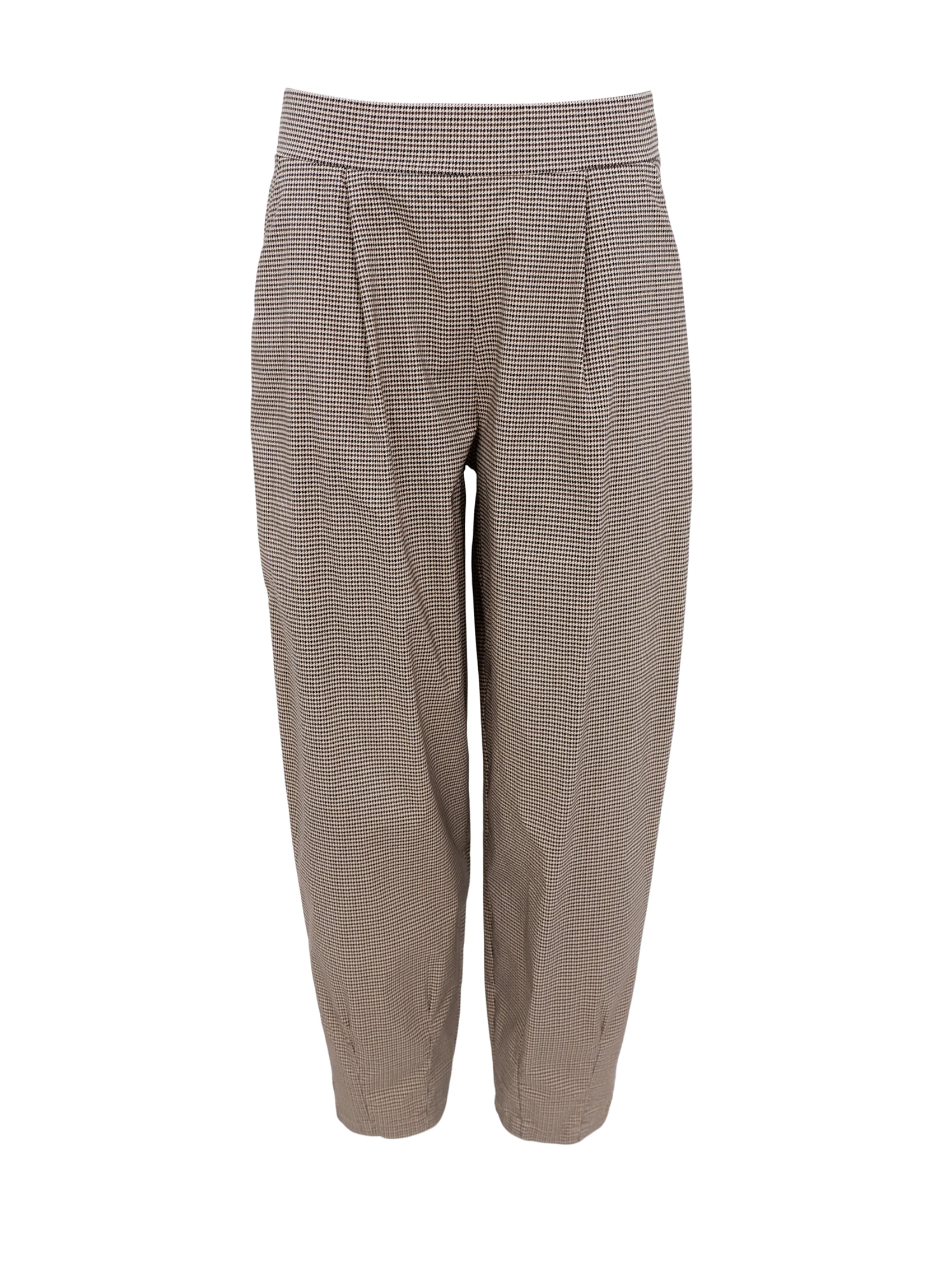 Wir präsentieren Ihnen unsere beliebte Davina-Hose in einer neuen Variante. Die gleiche moderne, geschwungene Form und die gewohnte hervorragende Qualität, jetzt mit einem stylischen Karomuster. Die Hose hat einen hohen Bund, Bundfalten vorne und eine abgerundete Silhouette, die für einen schmeichelhaften Saum und eine lässige Passform sorgt. Das elastische Material garantiert volle Bewegungsfreiheit und macht sie perfekt für den Alltag und auch für schickere Outfits.