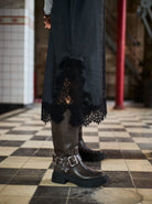 Elegantes Kleid mit dünnen Trägern und wunderschönen Spitzenborten an Ober- und Unterteil. Das Kleid hat eine schöne, gerade Passform, fällt fließend und verleiht einen eleganten Look. Der weiche, leicht glänzende Stoff sorgt für einen exklusiven Touch und macht das Kleid perfekt für festliche Anlässe und den Abend.