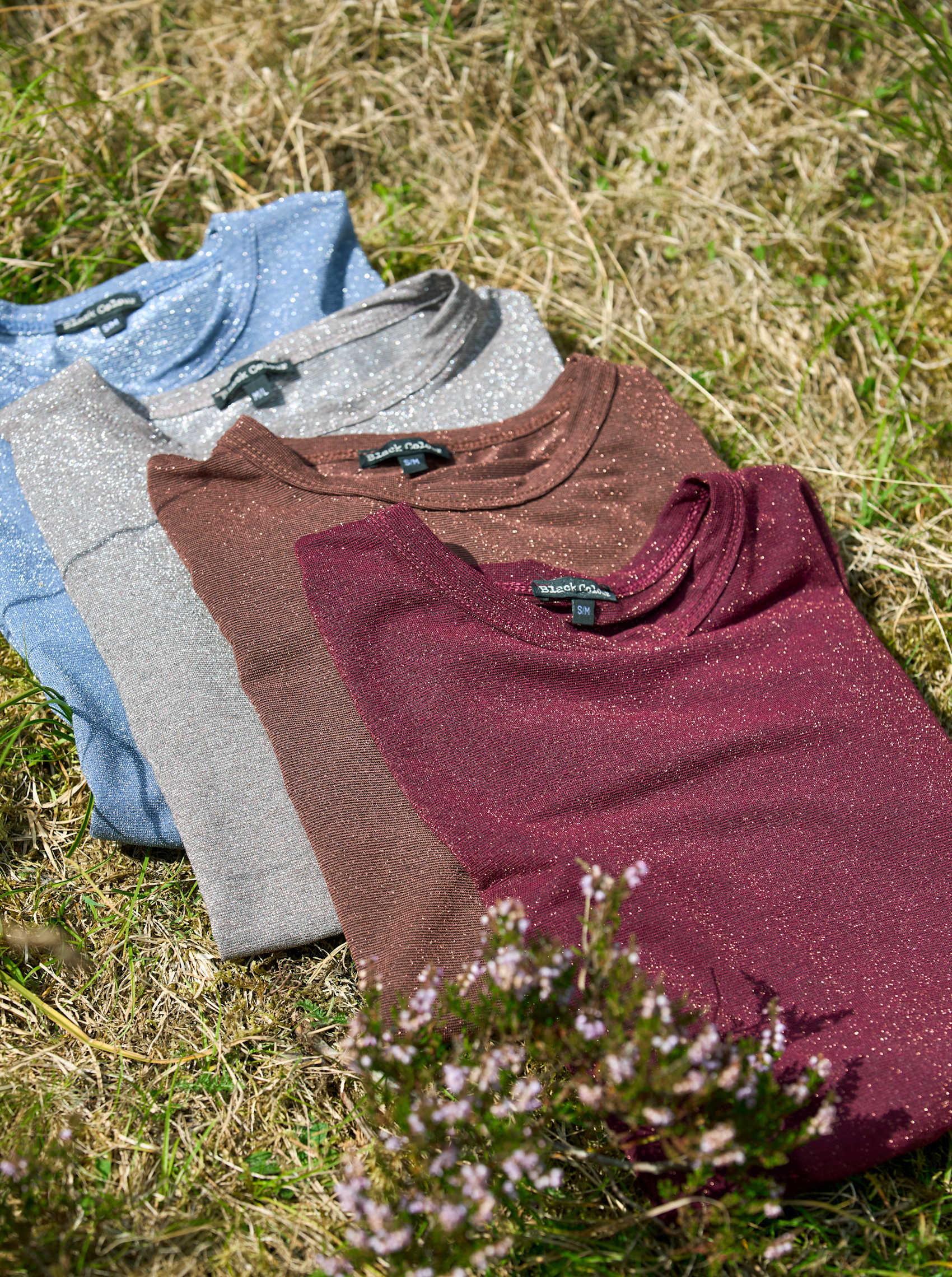 Unsere Langarmbluse Faye ist einer unserer absoluten Bestseller, und das verstehen wir! Die Bluse Faye ist eine wunderschöne, eng anliegende, einfarbige Glitzerbluse aus Lurexstoff, die sich perfekt zum Schichten eignet.