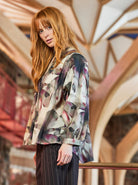 Feminine und elegante Hemdbluse mit Knopfverschluss und kleinem Stehkragen. Die Bluse hat lange Ärmel mit Gummizug am Handgelenk und eine lockere, bequeme Passform. Perfekt zu Jeans und Röcken für einen stilvollen Alltagslook.