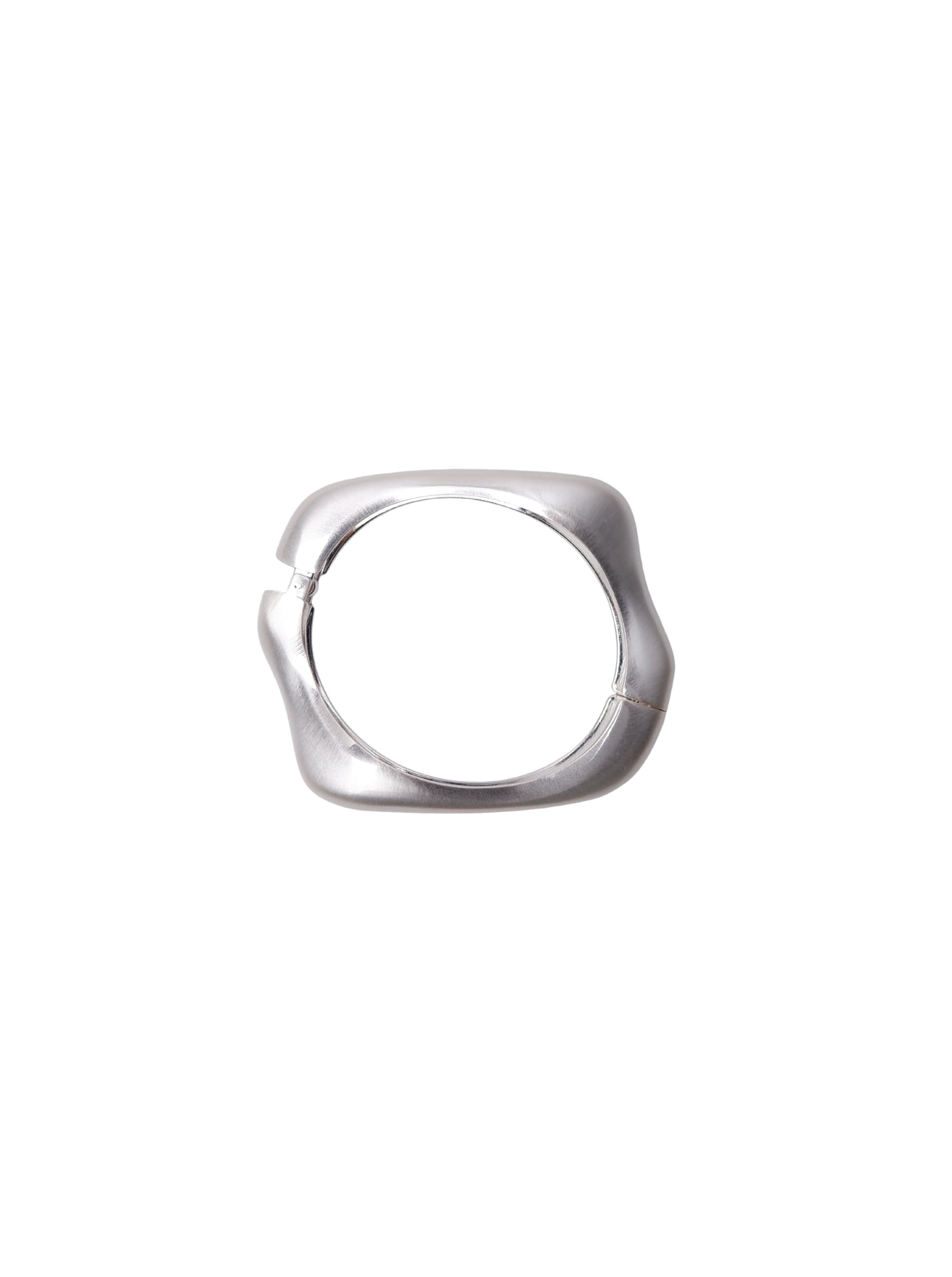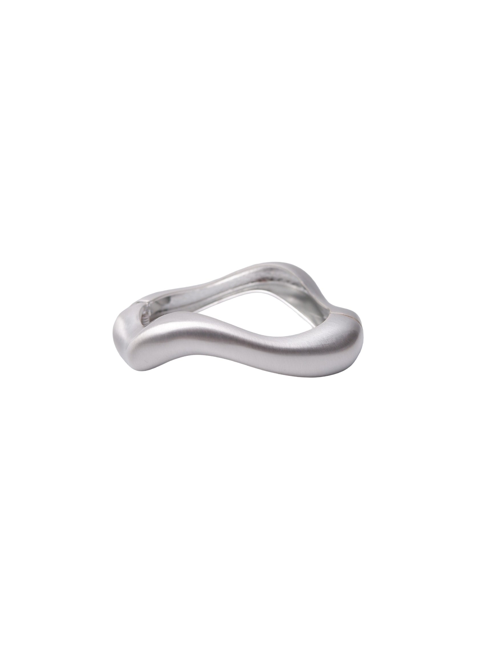 Dieses Armband besticht durch seine weiche, organische Form und ist aus gebürstetem, mattem Metall gefertigt, was ihm einen modernen und exklusiven Look verleiht. Es lässt sich seitlich leicht öffnen und ist daher einfach an- und abzulegen. Nickelfrei.