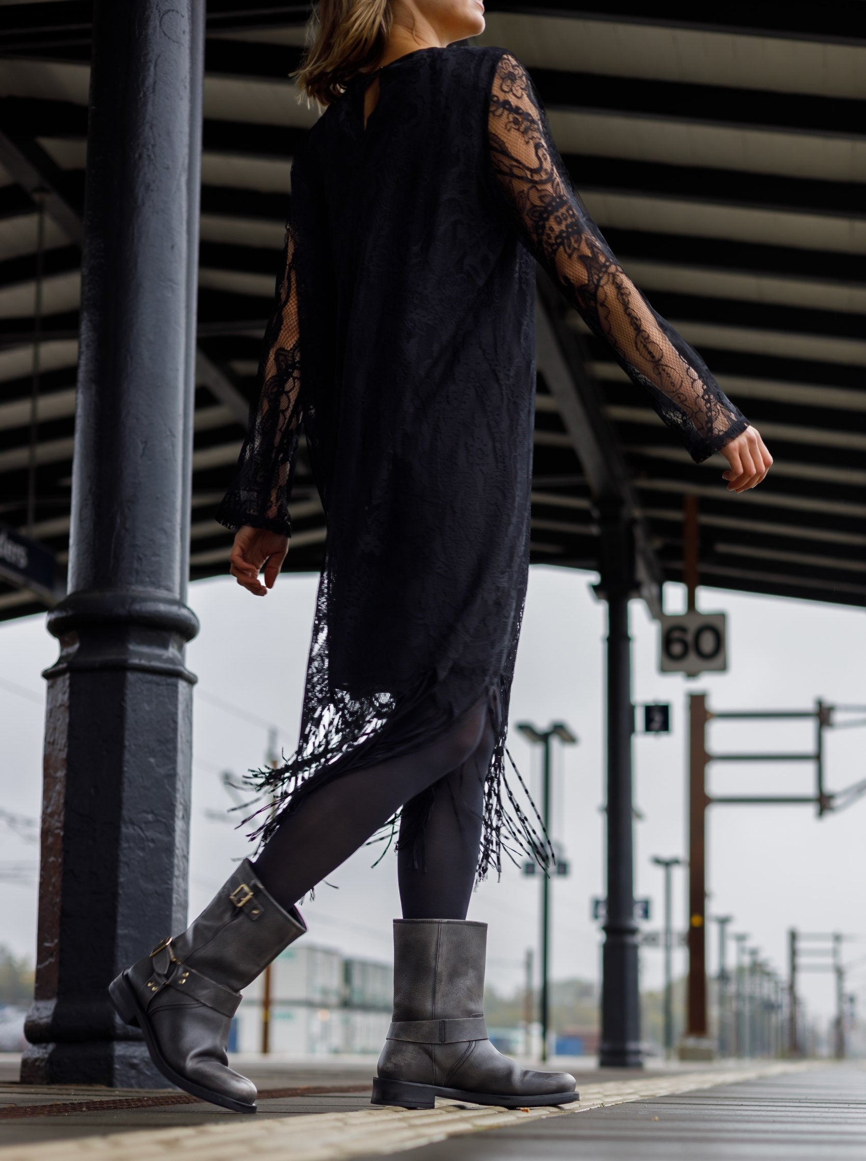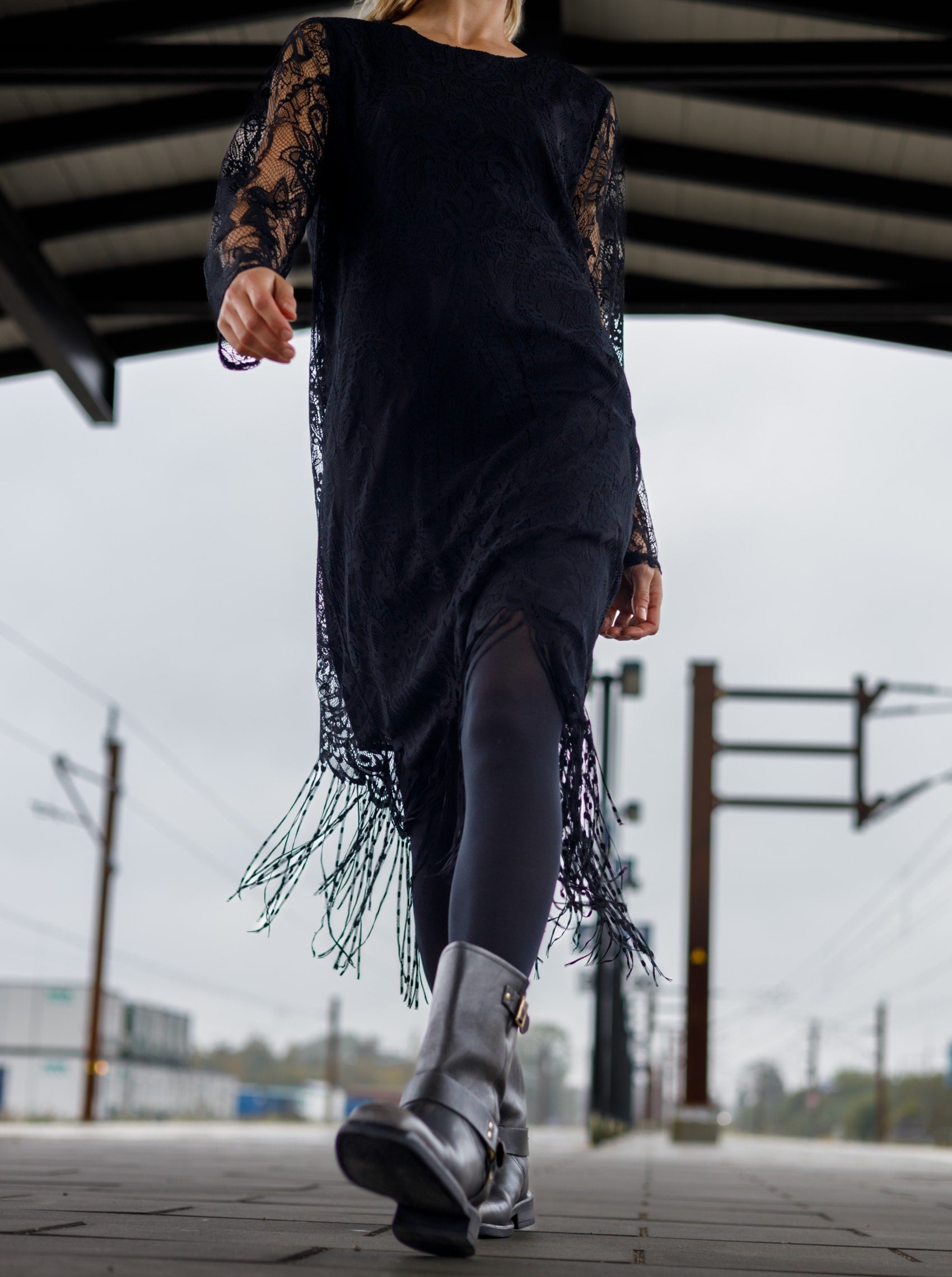 Flapper-Kleid aus Spitze mit langen Fransen am unteren Ende.