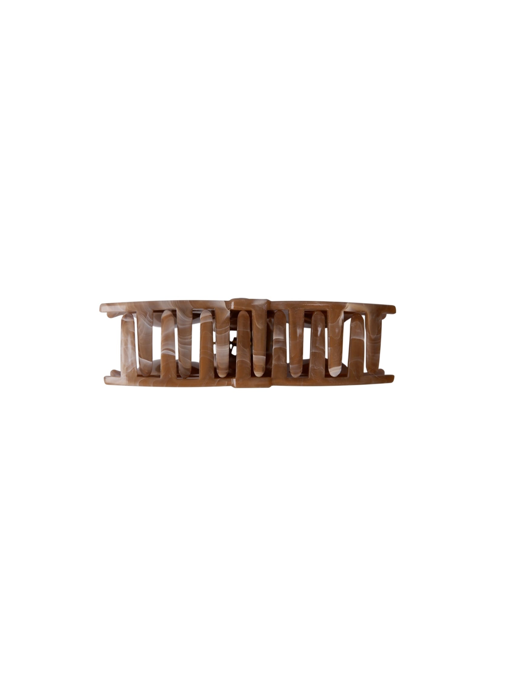 Eine wunderschöne Haarspange mit glänzender Oberfläche und sanften Farbnuancen, die für einen eleganten Look sorgt und das Haar sicher an Ort und Stelle hält.