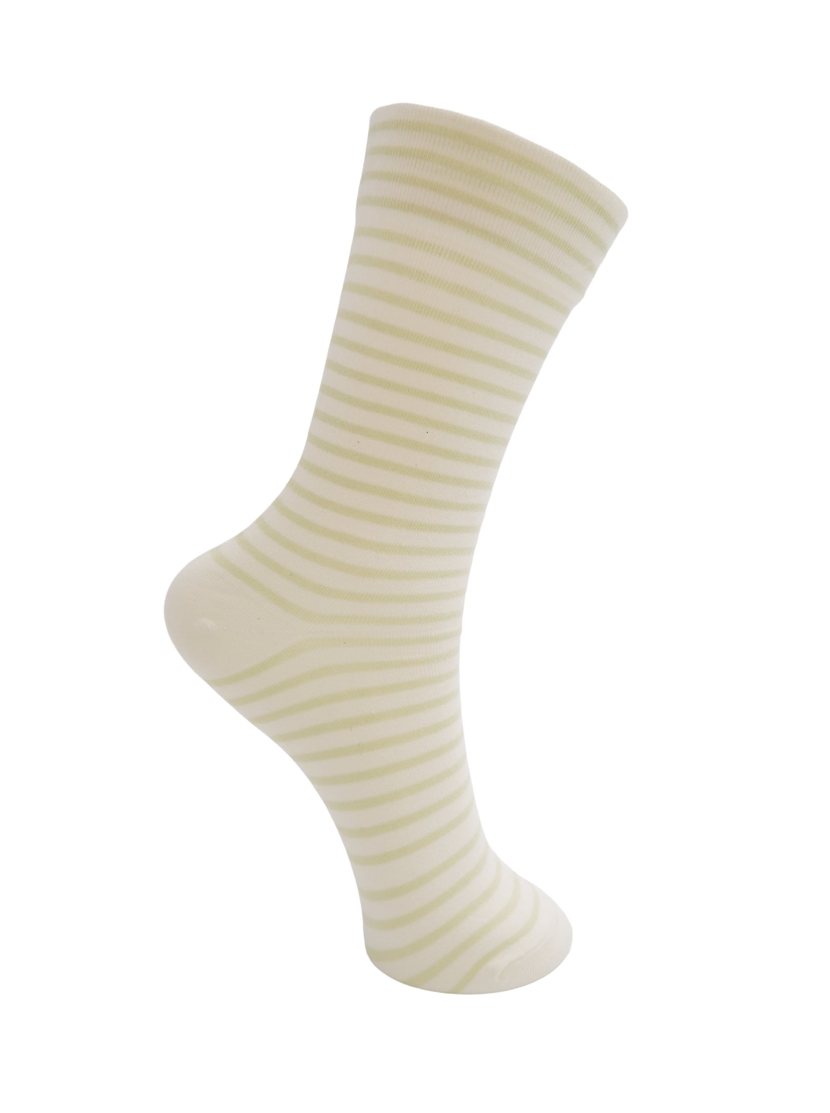 Die Gisele-Socken haben ein zartes Streifenmuster, das ihnen einen femininen und stilvollen Touch verleiht. Die weiche und elastische Qualität sorgt für optimalen Tragekomfort, während das zeitlose Design sie perfekt für den Alltag und Freizeitlooks macht. Eine elegante Ergänzung für Ihre Garderobe.