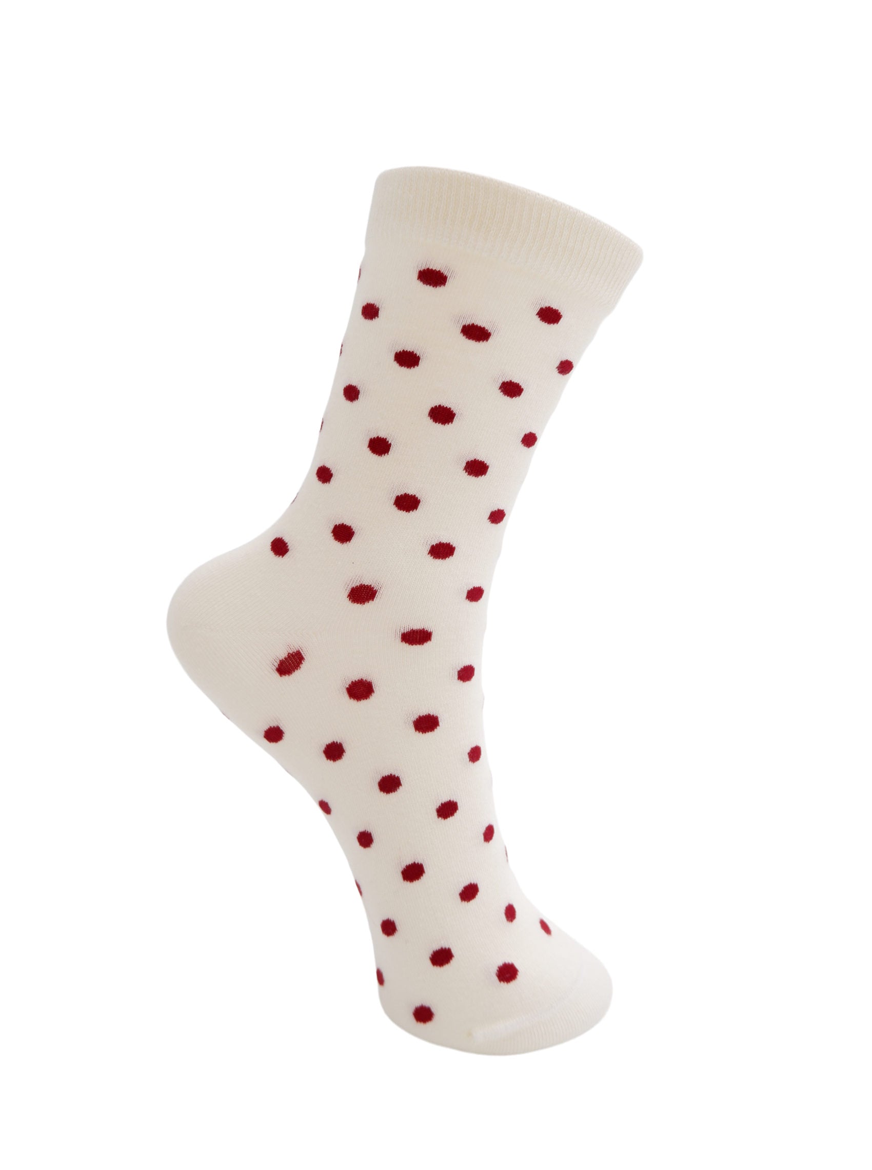 Süße und stylische Socken mit klassischem Punktemuster. Die weiche und elastische Qualität sorgt für einen angenehmen Tragekomfort, während das verspielte Design Ihrer Alltagsgarderobe einen charmanten Touch verleiht. Perfekt für lässige und feminine Looks.