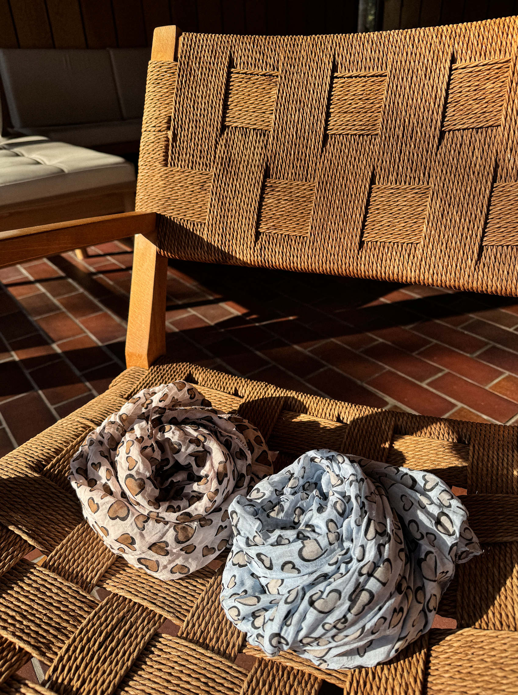 Unser Hestia-Schal ist ein weicher und eleganter Schal aus einer schönen Baumwoll-Seidenmischung. Der Schal ist mit einem wunderschönen Herz-Print versehen, der ihm eine feminine und romantische Note verleiht. Das leichte Material macht den Schal ideal für den Alltag und besondere Anlässe. Perfekt, um jedes Outfit mit einem stilvollen und charmanten Look aufzupeppen.