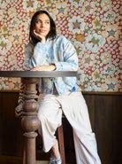 Entworfen mit Druckknöpfen vorne und einem klassischen Kragen, der einen scharfen und modernen Touch verleiht. Der elastische Abschluss unten sorgt für eine schöne Form und unterstreicht den Cropped-Effekt. Stylen Sie sie über einem Kleid für einen femininen Look oder mit Jeans und einem Top für ein cooles und durchdachtes Outfit.