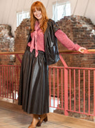 Trendiger und vielseitiger Midirock aus Kunstleder. Das Modell hat einen elastischen Bund für eine bequeme Passform, Seitentaschen und einen leichten A-Linien-Schnitt, der viel Bewegungsfreiheit bietet. Perfekt zu groben Strickwaren und femininen Oberteilen – ein Must-have in jeder Garderobe.