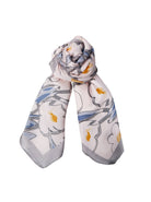 Dieser feine Minischal hat einen durchgehenden Blumendruck und einen weichen, dekorativen Look.