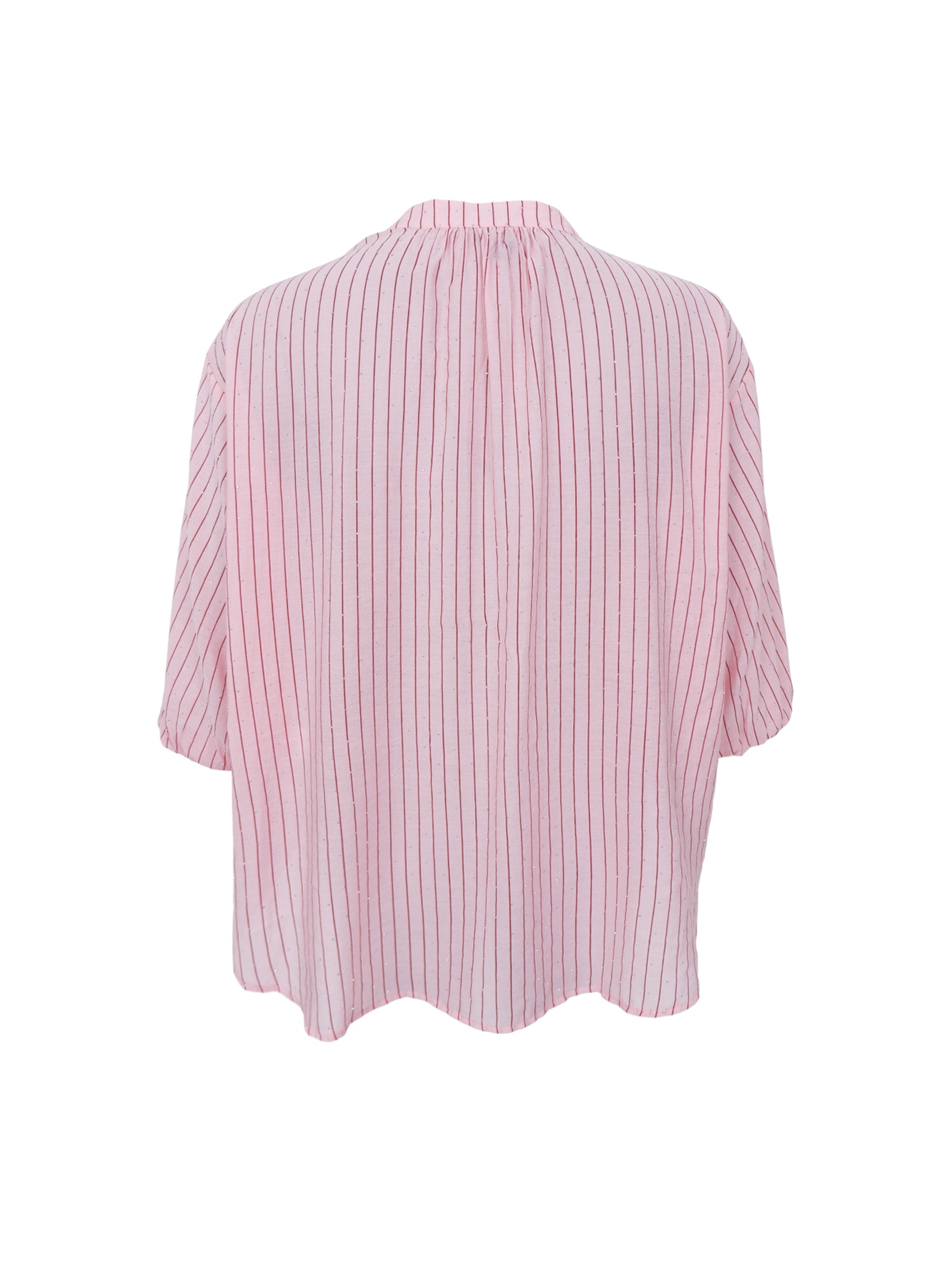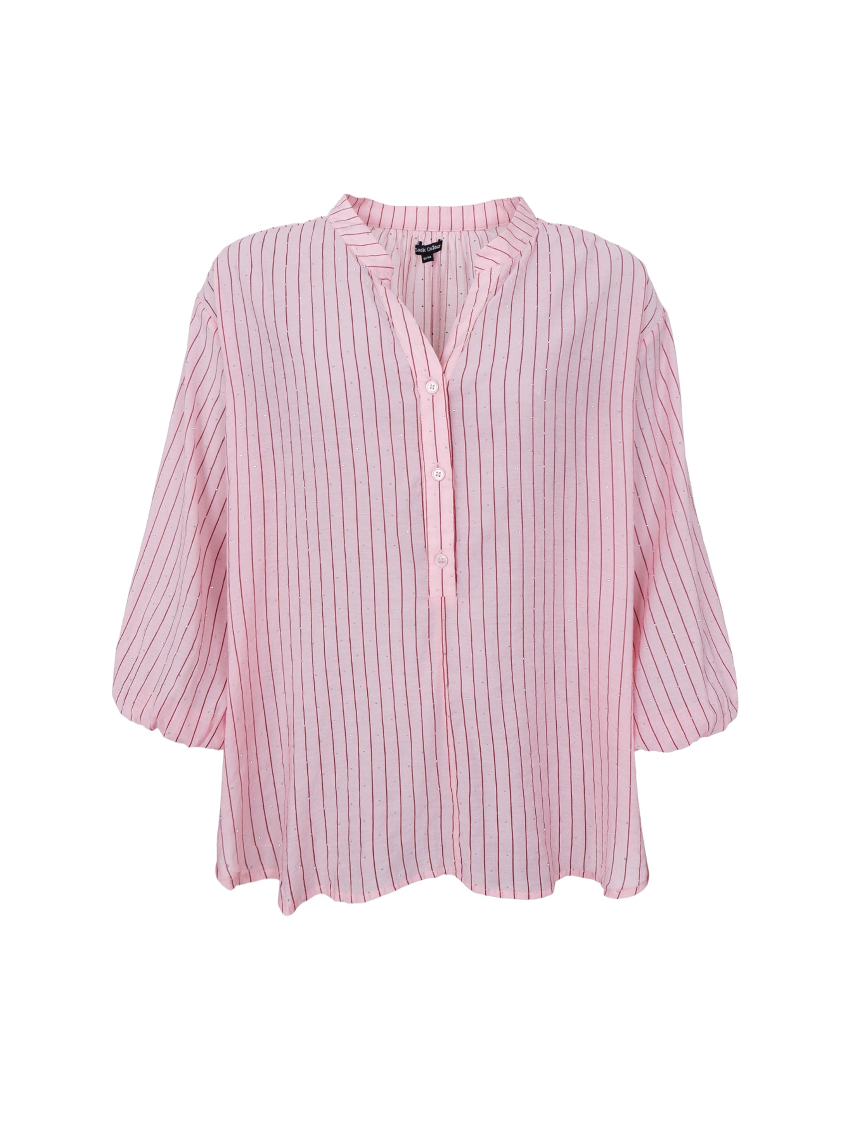 Die Bluse Kendall besticht durch ihren leichten und femininen Stil mit einer entspannten und eleganten Ausstrahlung. Ihr lockerer Schnitt umspielt die Figur vorteilhaft und verleiht einen mühelosen Look. Die Bluse ist mit einem schmeichelhaften V-Ausschnitt, wunderschönen Strasssteinen und einer Knopfleiste versehen, die ihr eine klassische Note verleiht. Die 3/4-langen Ärmel mit leichtem Volumen und elastischem Saum sorgen für eine weiche Silhouette, während die feinen Längsstreifen den leichten und modernen Charakter unterstreichen.