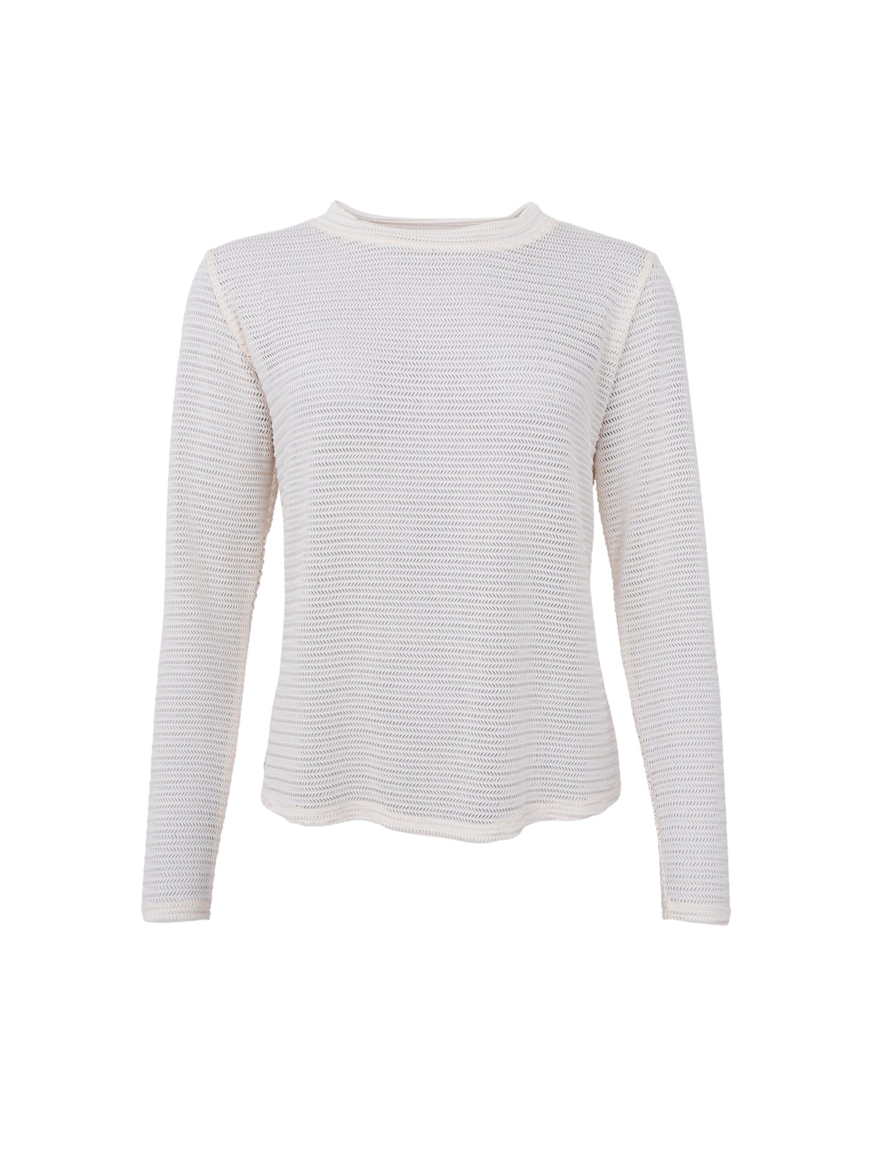 Unsere Lili Mesh-Bluse aus leichtem Waffelstrick mit feiner Struktur besticht durch ihren schlichten und modernen Look. Das Modell hat einen Rundhalsausschnitt, lange Ärmel und einen geraden Schnitt, was für eine bequeme Passform und eine klare Silhouette sorgt. Eine vielseitige Basic-Bluse mit Struktur, die solo oder als leichte Schicht unter Hemden, Jacken und Strickwaren perfekt harmoniert.