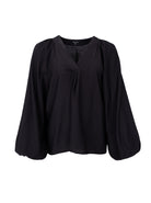 Verleihen Sie Ihrem Outfit mit dieser feinen Bluse in luftig-leichter Qualität eine feminine Note. Die Bluse hat einen eleganten V-Ausschnitt mit Falten vorne, die einen schmeichelnden Saum bilden. Die langen Ballonärmel mit Gummizug am Handgelenk verleihen Volumen und eine entspannte Eleganz. Perfekt für den Alltag und elegante Anlässe – kombinieren Sie sie mit Jeans, Hosen oder einem Rock für einen stilvollen Look.