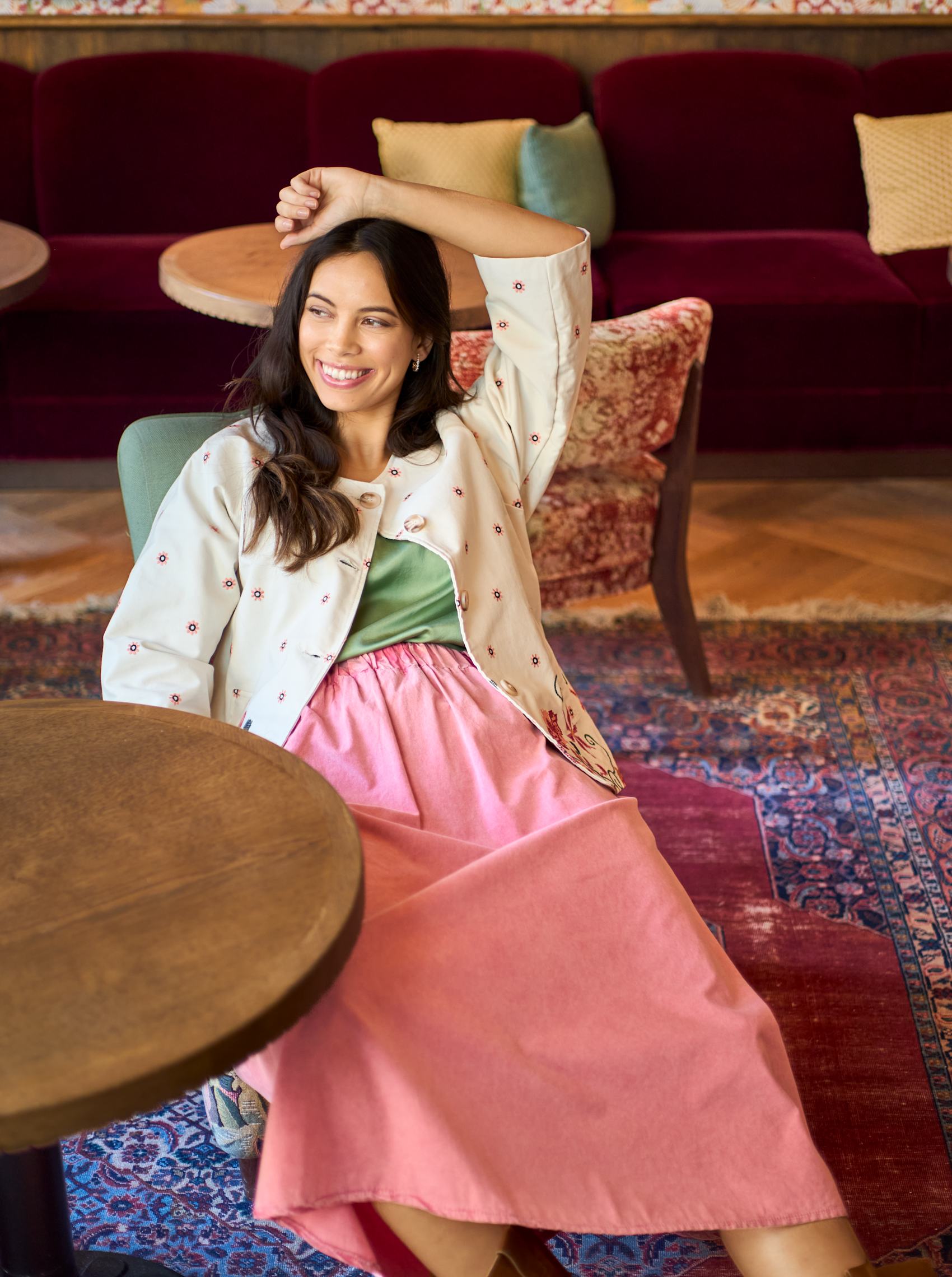 Schlichte und stilvolle Bluse mit Rundhalsausschnitt und lockerer Passform, die schön um den Körper fällt. Die kurzen Ärmel sind mit einem leichten Rüschendetail versehen, das dem ansonsten minimalistischen Look eine feminine Note verleiht. Hergestellt aus weicher und leichter Viskosequalität, ideal für den Alltag und formellere Anlässe.