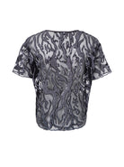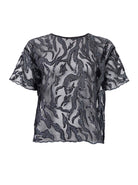 Die Maggie Bluse ist eine kurzärmelige Netzbluse mit wunderschönen Glitzerdetails. Die Bluse hat einen Rundhalsausschnitt und eine leichte, transparente Qualität, die ihr einen eleganten und festlichen Look verleiht. Perfekt zum Tragen über einem Top für einen modernen Party-Look im Lagenlook.