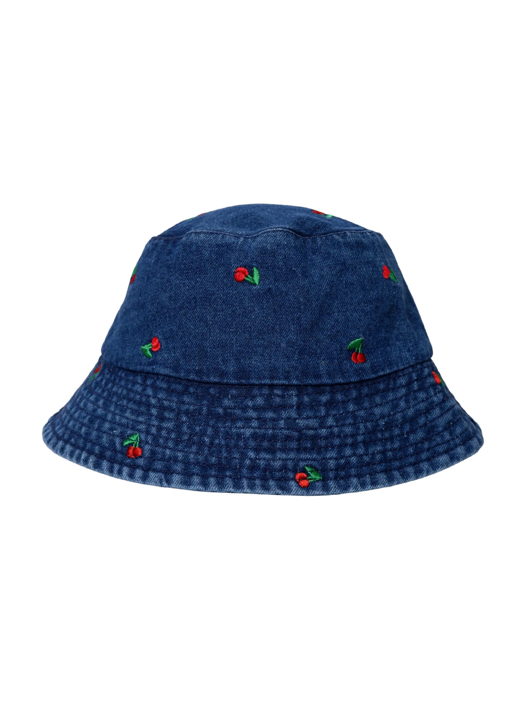 Cooler Denim-Bucket-Hut mit Kirschstickerei – ein süßes und verspieltes Detail für deinen Sommerlook. Die weiche Passform bietet ganztägigen Tragekomfort, während die Fruchtstickerei ihm einen frischen und femininen Touch verleiht. Perfekt für Stadtleben und Strandtage.