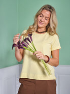 Unser kurzärmliges T-Shirt May ist ein schönes, locker sitzendes Baumwoll-T-Shirt mit Rundhalsausschnitt und einer kleinen Falte an den Ärmeln. Die Bluse ist unifarben und ganz schlicht, was sie unglaublich vielseitig macht, da sie sich mit fast allem kombinieren lässt.