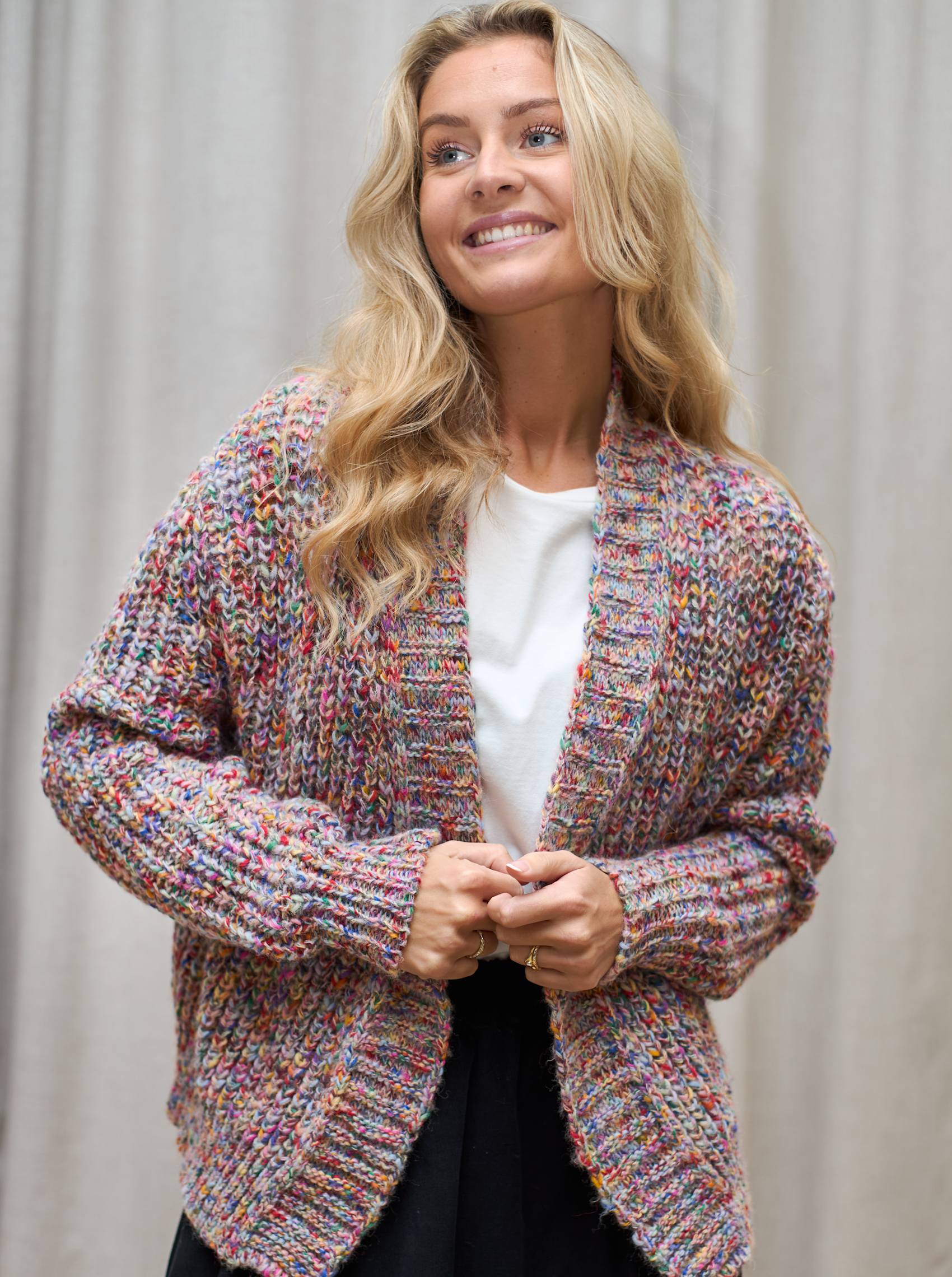 Diese weiche, luftig gestrickte Strickjacke aus einem wunderschönen Melange-Garn besticht durch ihre farbenfrohe und lebendige Optik. Sie hat eine lockere Passform mit leicht voluminösen Ärmeln und gerippten Bündchen an Handgelenken und Saum, was für hohen Tragekomfort und optimale Bewegungsfreiheit sorgt.