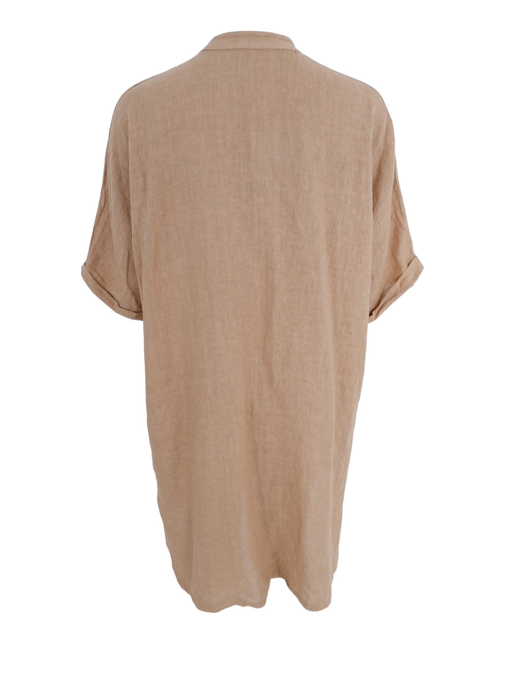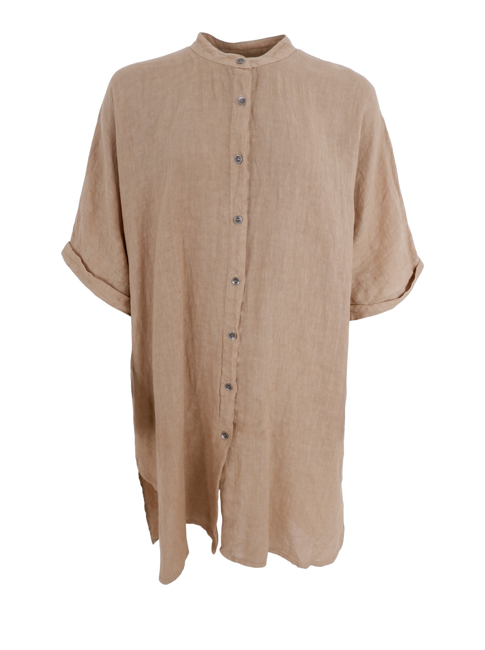 Unsere Melina Tunika ist ein schönes und schlichtes Hemdblusenkleid aus 100 % Leinen. Das Hemd hat durchgehende Knöpfe, kurze Ärmel und dezente Seitentaschen. Tragen Sie diese Tunika allein mit Sandalen oder mit einer luftigen Leinenhose und schönen Ballerinas.