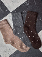 Bequeme gepunktete Socken, die Ihre Füße warm halten.