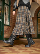 Midirock mit Karomuster und lockerer, leicht A-förmiger Passform. Der elastische Bund auf der Rückseite sorgt für Komfort und Flexibilität. Ein klassisches Design, das mit Strickwaren, Hemden oder dem passenden Blazer für einen kompletten Look kombiniert werden kann.