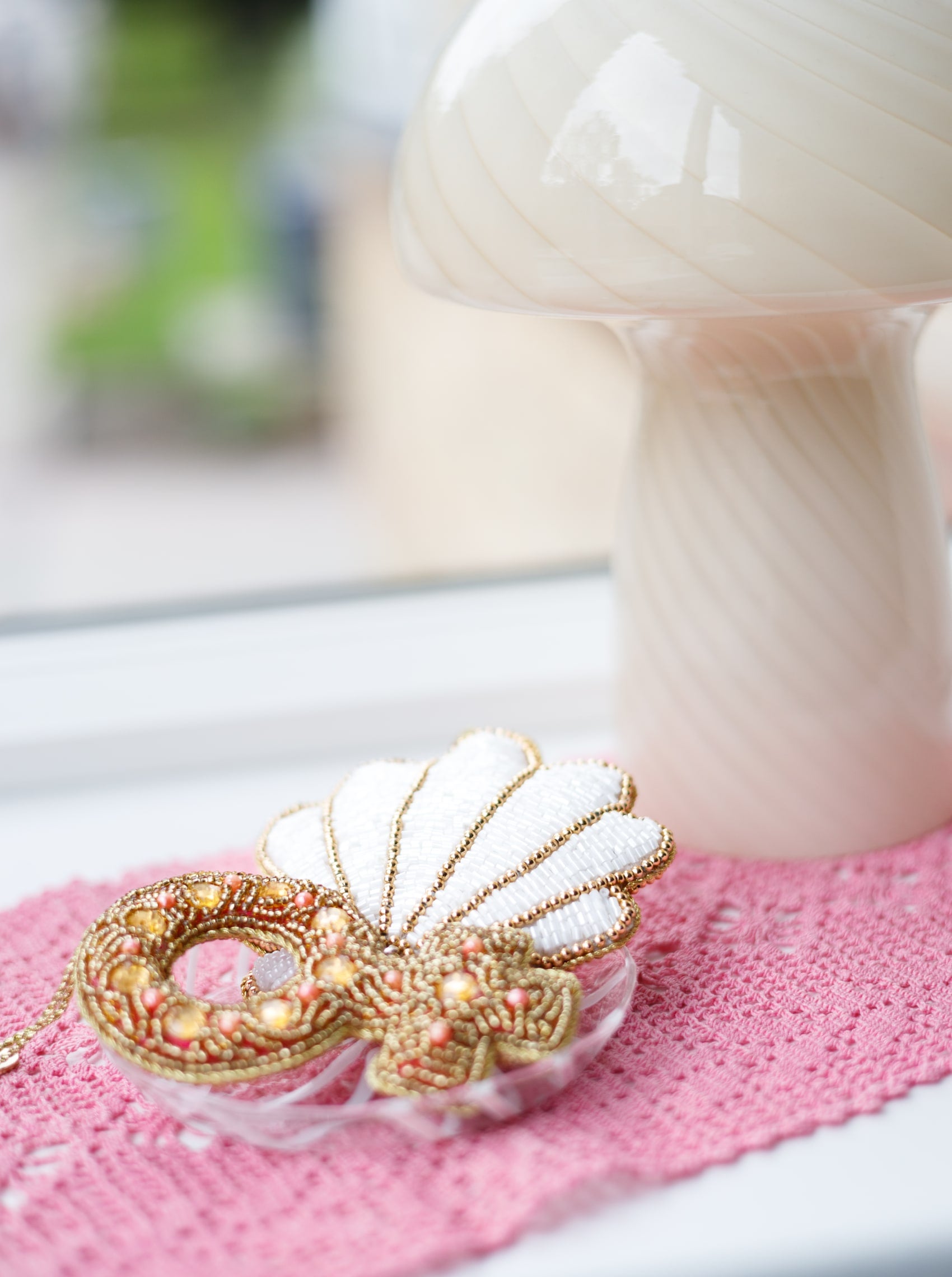 Wunderschönes Weihnachtsdeko-Ornament mit weiblichem Zeichen, handgefertigt in Indien. Größe: 10 cm