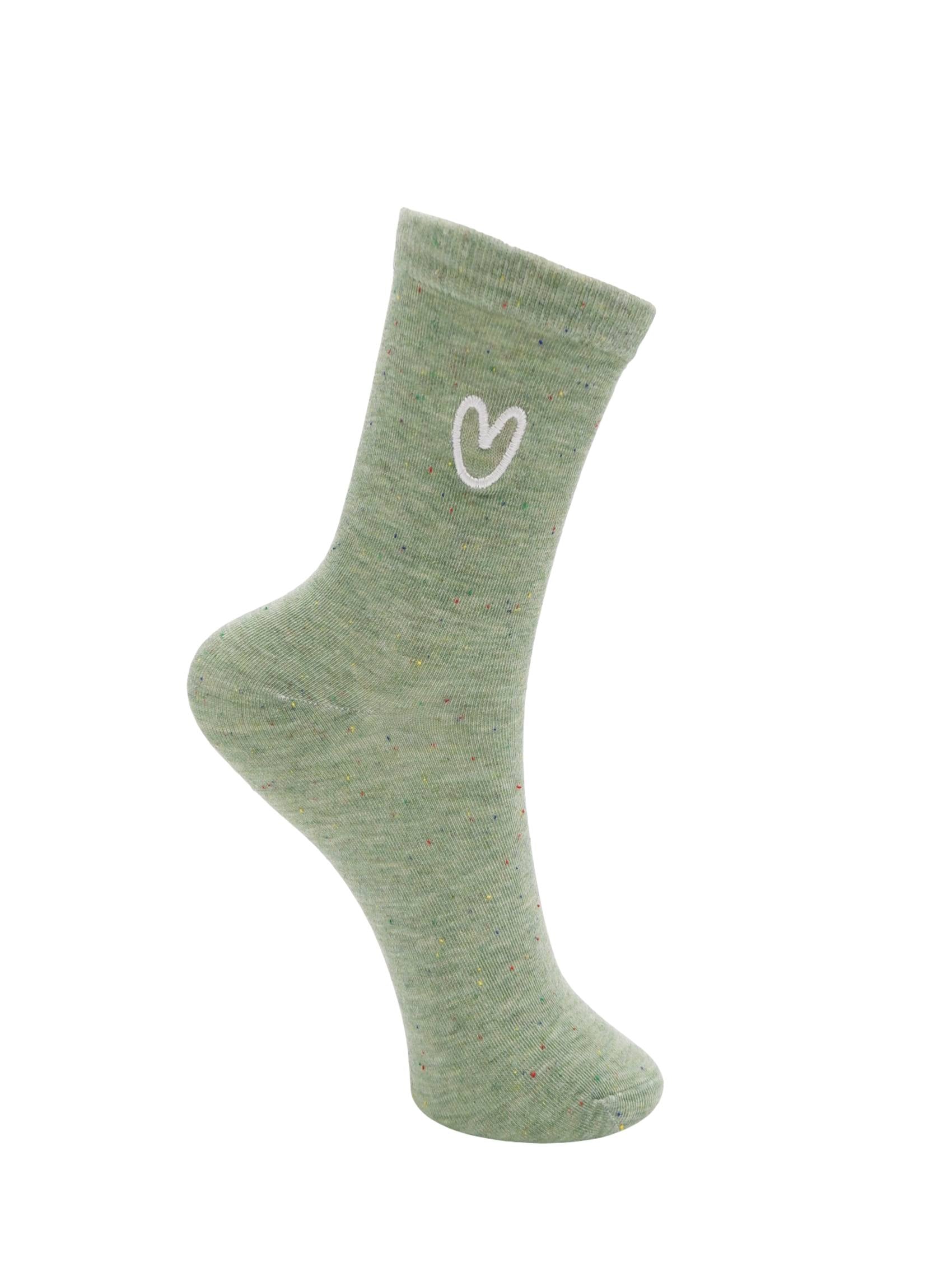 Wunderschöne, weiche Socke mit einem süßen, gestickten Herzen am Knöchel. Der Melange-Strick und die schlichten Details verleihen einen entspannten, aber charmanten Look – perfekt für Alltagsoutfits. Erhältlich in verschiedenen schönen Farben, sodass Sie jeder Garderobe einen Hauch von Liebe verleihen können.