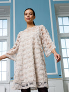 Das Violet-Kleid ist ein einzigartiges und wunderschönes Kleid mit wunderschönen femininen Details. Dieses Kleid ist mit seinem dekorativen Blumenmuster absolut einzigartig und daher ideal für eine schöne Party oder einen Abend. Das Kleid ist transparent und wird daher mit einem passenden Unterrock mit Trägern geliefert. Das Violet-Kleid hat eine schöne A-Form und ¾-Ärmel, wodurch es super bequem zu tragen ist und an allen Körpertypen schön aussieht.